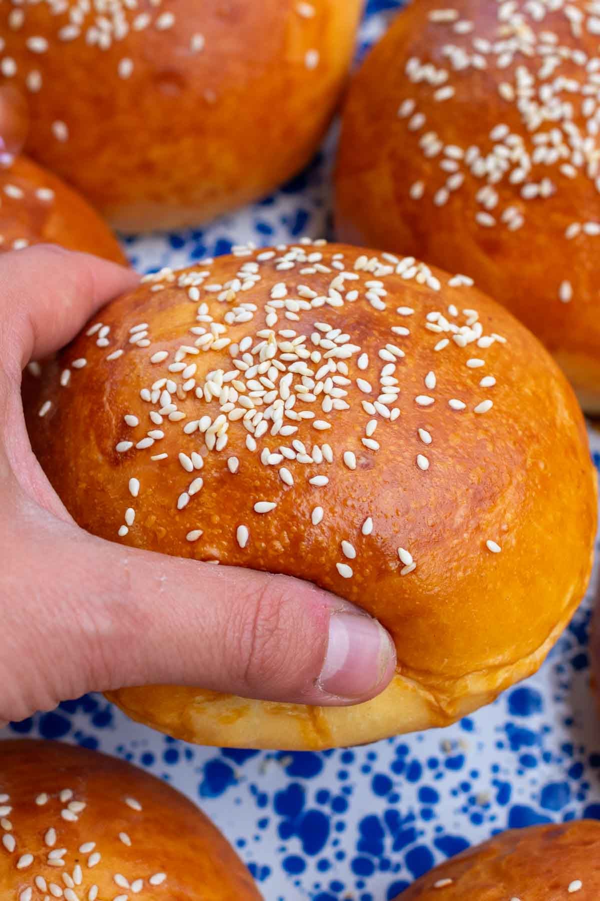 They’re sturdy enough to hold a burger and have many toppings and condiments but light and fluffy enough not to weigh a burger down too much.